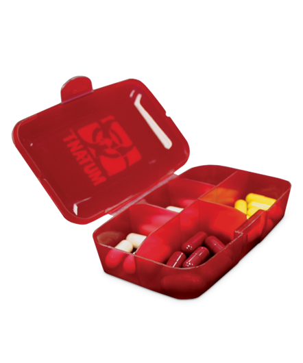El pastillero Mutant de 5 compartimentos construido con plástico moldeado duradero es simple pero útil para sus días de entrenamiento.