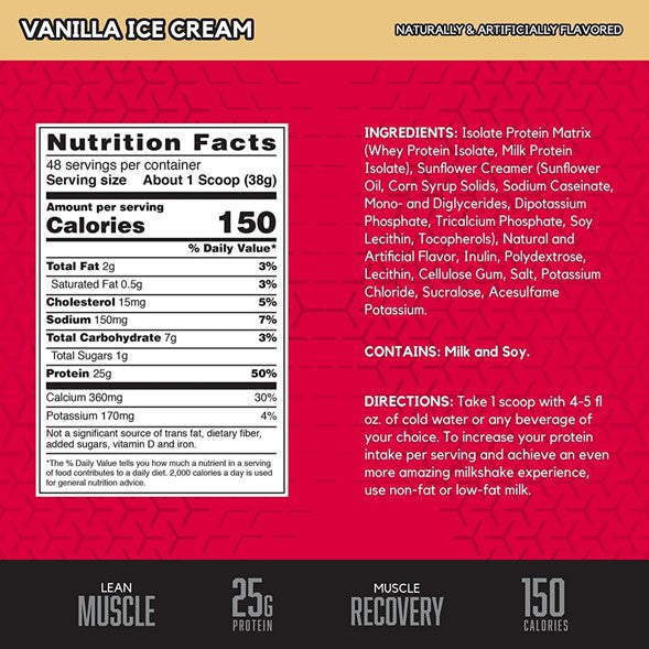 SYNTHA-6 ISOLATE es lo último en proteína en polvo ultra-premium, con 100% fuentes aisladas de proteínas. Una mezcla 50/50 de proteína de suero y aislado de proteínas lácteas (una fuente de caseína de alta calidad de lenta digestión), con la matriz de proteínas única Isolast™ ofrece una mezcla de proteínas de rápida y lenta liberación que promueve un ritmo moderado de liberación de aminoácidos para alimentar los músculos activos.